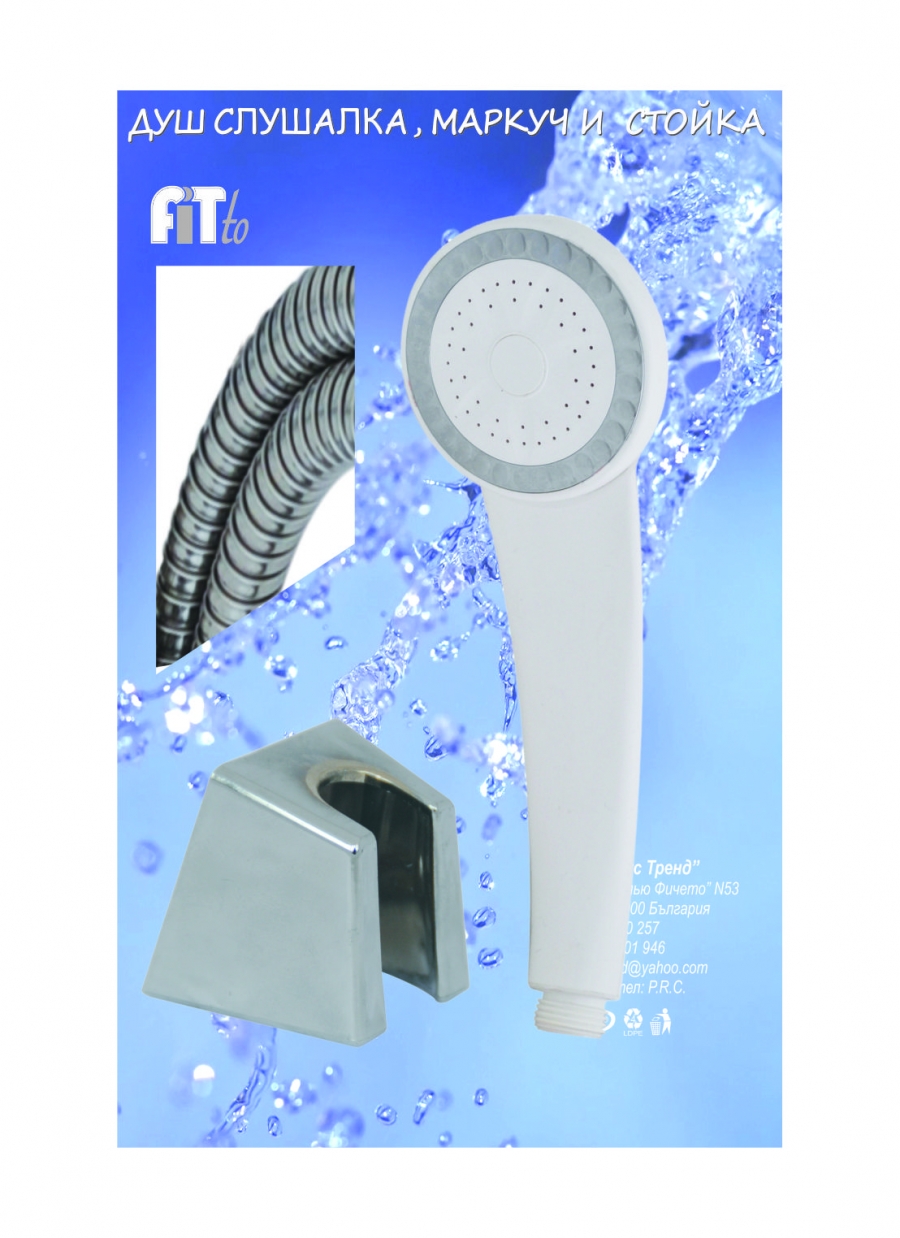 Душ слушалка без функции,маркуч-1,5м,неподвижна стойка.